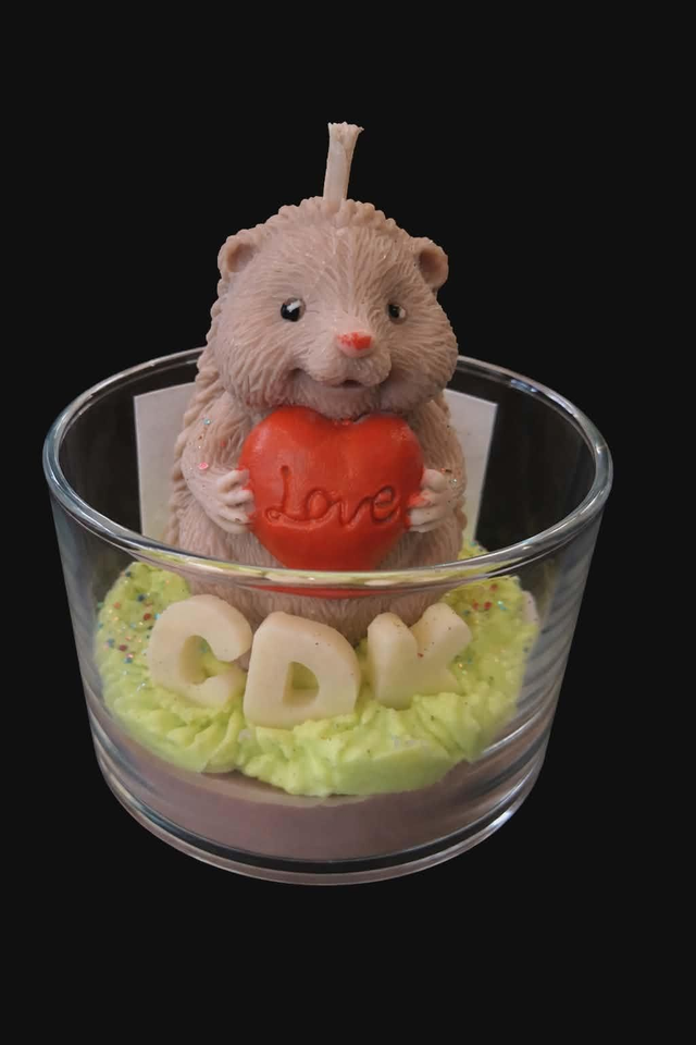 Craquez pour la tendresse de notre bougie "Petit Hérisson d'Amour", une création exclusive signée Made in CDK. Entièrement façonnée à la main, cette bougie décorative en verre met en scène un adorable hérisson tenant un cœur rouge gravé "Love", reposant sur un lit de cire onctueuse avec l'emblématique signature CDK.